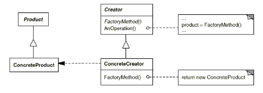 - 當類別無法明指想要生成的物件類別時。當類別希望子類別去指定想要生成的物件類型時。將類別將權力下放一個或多個子類別,你又希望將「交付給哪些子類別」的知識集中在一個地方時。