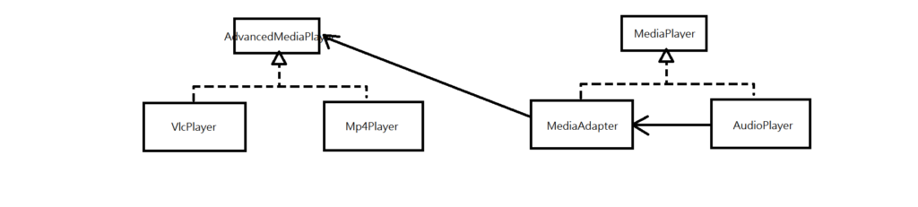 public MediaAdapter(String audioType) { // 在Adapter實例化實才決定Adaptee為何物(也可以直接傳入AdvancedMediaPlayer類物件) if (audioType.equalsIgnoreCase("vlc")) { advancedMusicPlayer = new VlcPlayer(); } else if (audioType.equalsIgnoreCase("mp4")) { advancedMusicPlayer = new Mp4Player(); } }