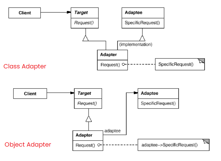 - 綁死在實體adaptee類別上。可以覆寫adaptee的某些行為。只引入一個物件個體。不能在Runtime時轉換adaptee的類別。可以透過覆寫向adaptee增加新功能。